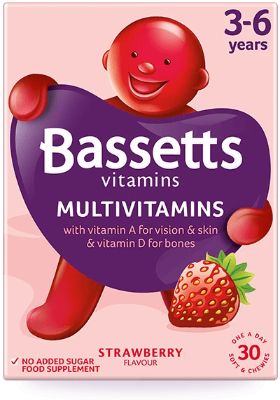 Bassetts Vitamin Past 3-6yr Strawberry contain Vitamin D for healthy bones and muscle function and vitamin A for healthy vision and skin. A soft, delicious, and chewy multivitamin formula with a balance of nutrients. For a fresh start to the day, it contains nutrients to support health, including Vitamin D for healthy muscles and bone growth and Vitamin A for healthy vision and skin.