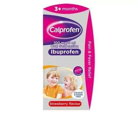 Calpol Calprofen Suspension Ibuprofen is an effective treatment for fever and pain, and it is suitable for children of age 3 months and over. Calpol Calprofen Suspension comes with a tasty strawberry flavour and it is both colour free and sugar free.