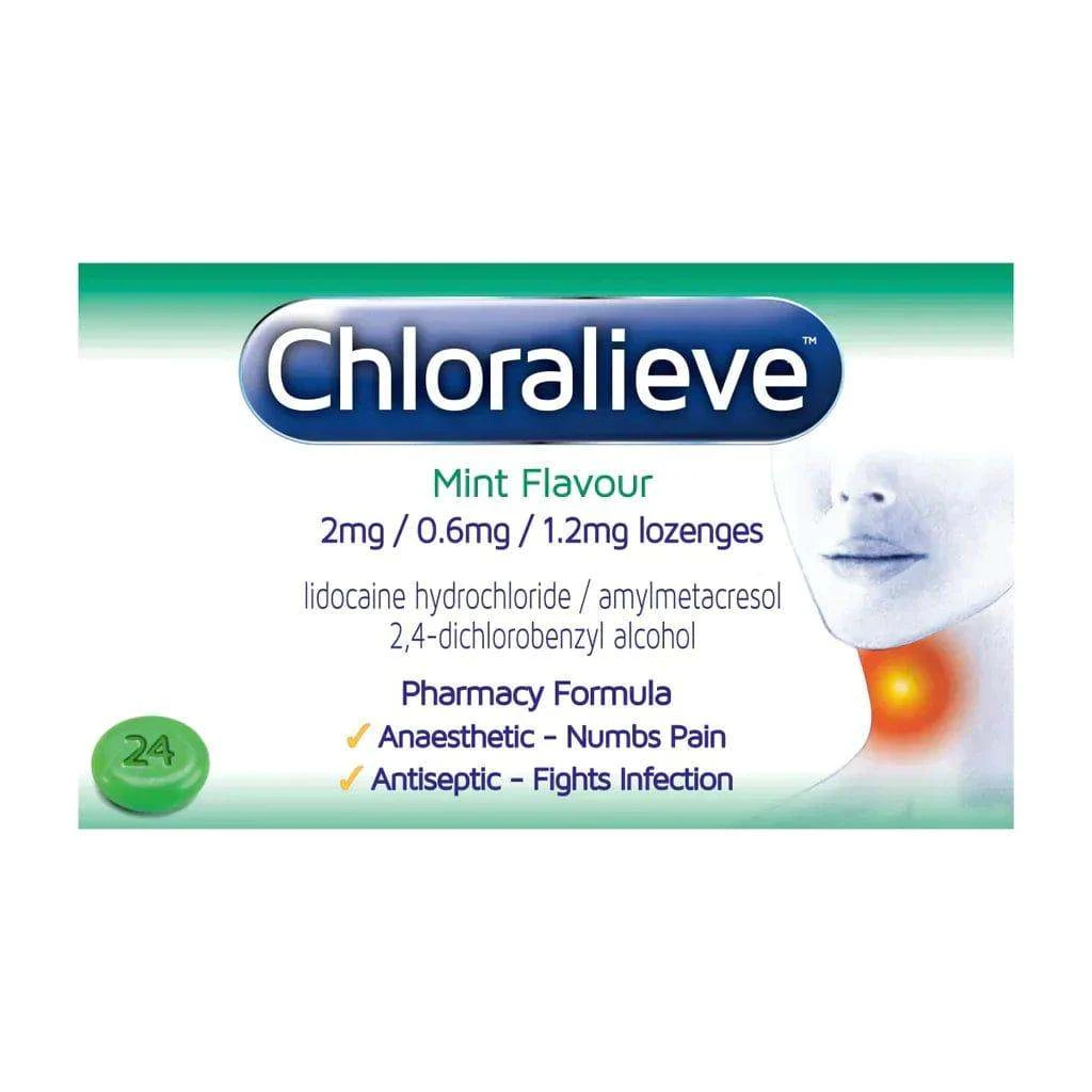 Chloralieve Mint lozenges can be used to soothe the symptoms related to a sore throat. The Chloralieve lozenges have two effective antiseptic ingredients; amylmetacresol as well as 2, 4-dichloro benzyl alcohol. These ingredients are dual action, which numb pain and fight infections. The pharmacy-only formula helps in order to fight the bacteria and viruses in the throat, and targets the infection at its source.