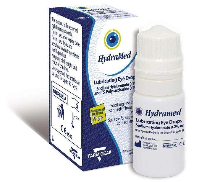 HydraMed Multi double action eye drops contain 0.2% sodium hyaluronate and 0.2% tamarind seed polysaccharide. They can effectively soothe and lubricate the eyes for a longer period of time when used together.