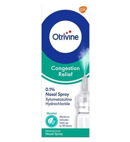 Otrivine Congestion Relief Nasal Spray is for application in the nose in order to provide relief from nasal congestion (i.e. blocked nose, including colds), sinusitis as well as allergic and perennial rhinitis (nasal mucous membrane’s recurring inflammation, including hay fever).